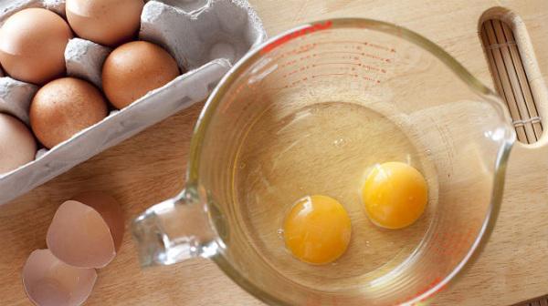 Đập 1-2 quả trứng gà vào bát, khuấy đều để trộn lòng trắng và lòng đỏ rồi thoa lên tóc.