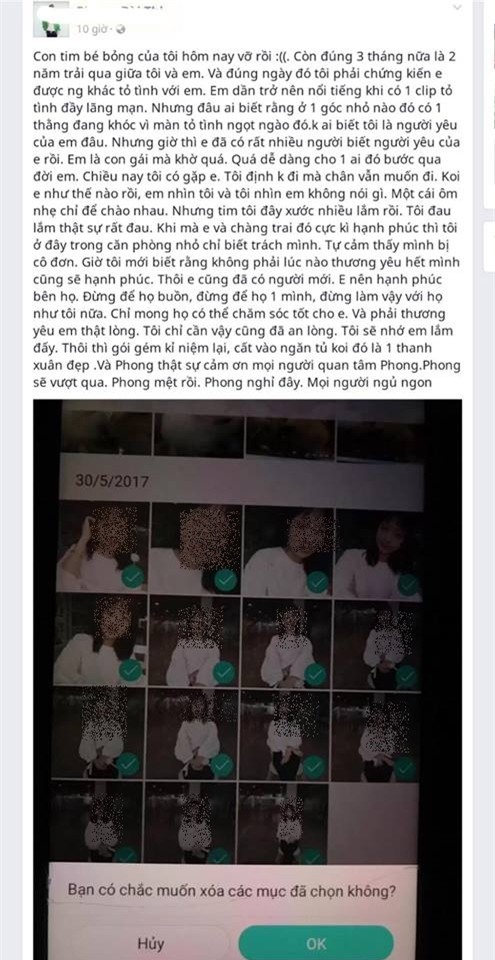 Nội dung tâm thư B.Đ.T.P viết: "Con tim bé bỏng của tôi hôm nay vỡ rồi. Còn đúng 3 tháng nữa là tròn 2 năm tôi và em yêu nhau. Và đúng ngày đó tôi phải chứng kiến em được người khác tỏ tình.