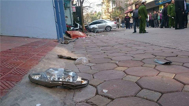 Theo một số người dân ở đây cho biết, vào thời điểm trên chiếc xe ô tô camry BKS 29A - 866.23 đã bất ngờ mất lái đâm trực diện vào nhiều xe máy.