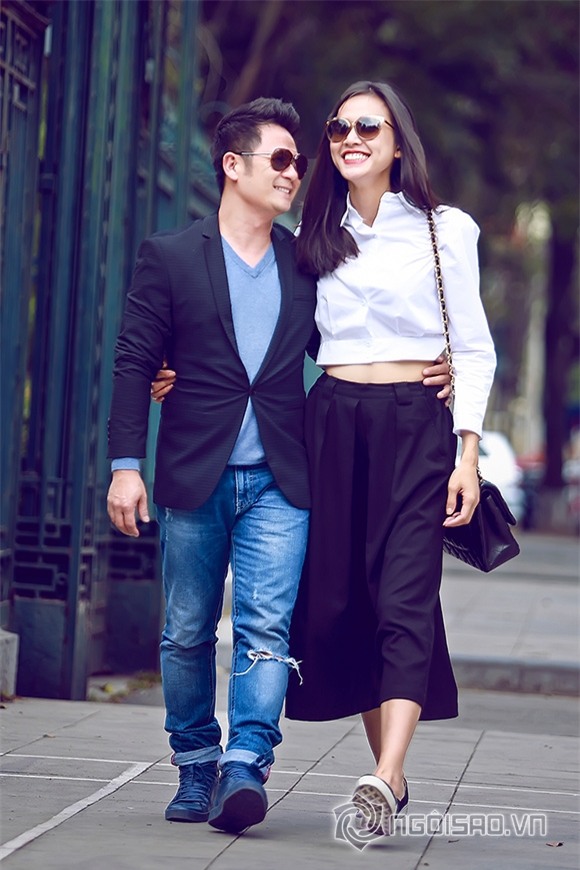 Bằng Kiều nắm chặt tay Dương Mỹ Linh trên phố