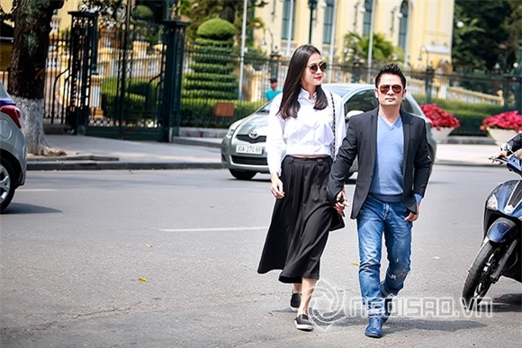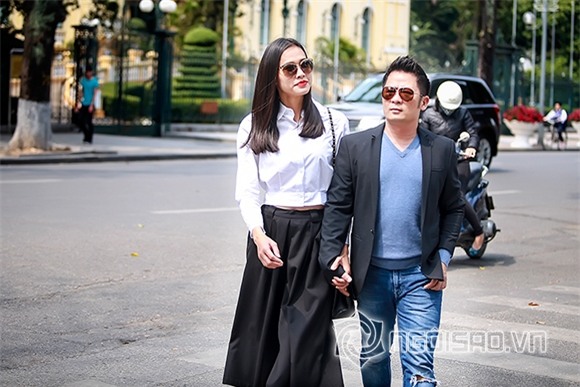 Bằng Kiều - Dương Mỹ Linh nắm chặt tay nhau dạo phố Thủ đô đầy tình tứ.