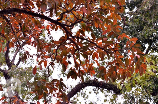 Những chiếc lá màu xanh bất ngờ chuyển đỏ nâu cũng khiến nhiều người thích thú.