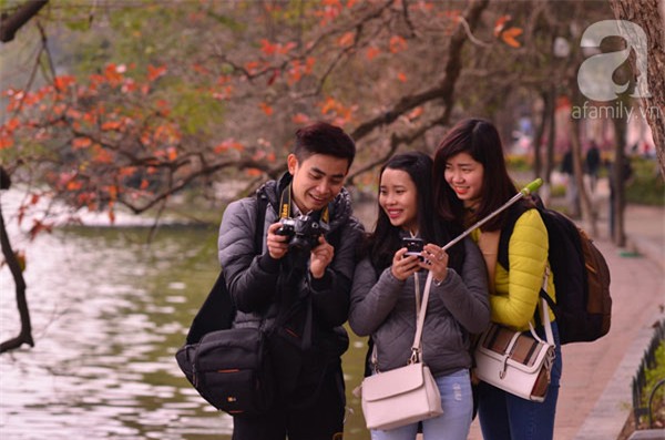 Nhiều bạn trẻ cũng không bỏ lỡ dịp này để cho mình những bức ảnh đẹp nhất về Hà Nội mùa lá đỏ.