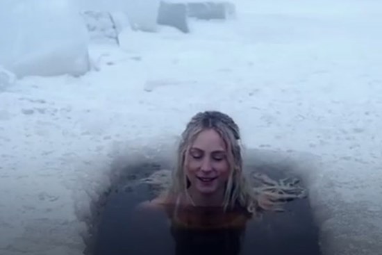 Video: Rùng mình xem cô gái tắm trong hồ băng