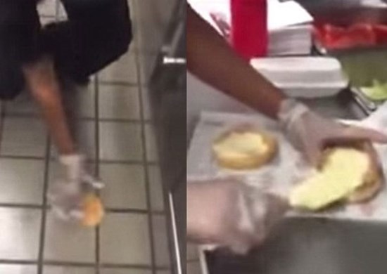 Clip: Nhân viên nhà hàng đồ ăn nhanh chùi bánh burger xuống sàn rồi đưa ra phục vụ khách
