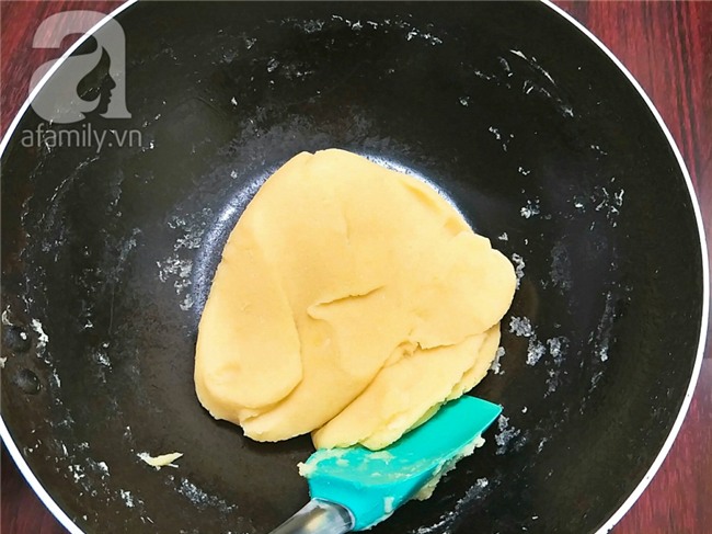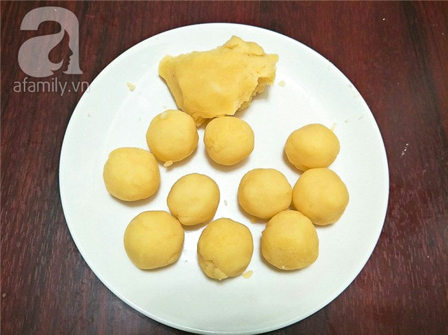 Để nhân đậu nguội bớt sau đó bạn viên lại thành các viên tròn đều nhau, để ra đĩa và bọc kín lại cho nhân không bị khô.