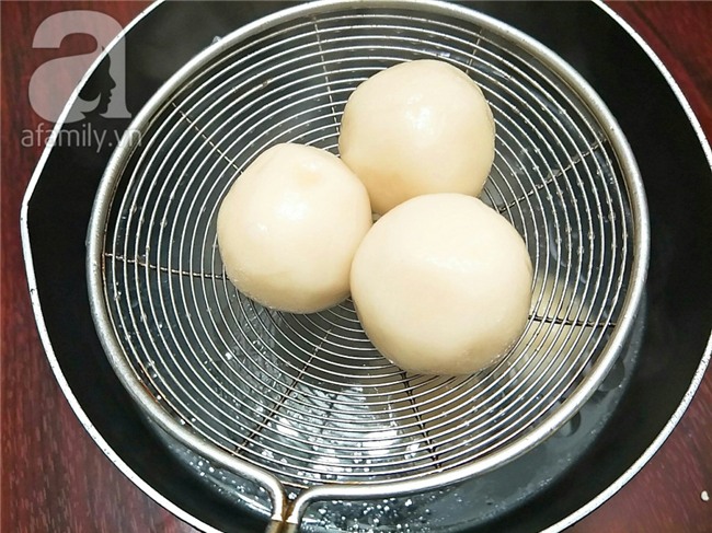 Đun 1 nồi nước sôi có cho 1 chút muối, dầu ăn, khi nước sôi, bạn thả từng viên bánh vào luộc cho tới khi bánh nổi lên là bánh chín, luộc thêm 1 phút nữa mới vớt bánh ra.