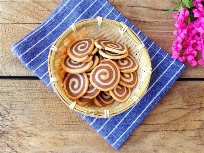 Bước 6: Gỡ màng bọc thực phẩm ra rồi cắt bánh thành từng lát. Đặt các lát bánh lên khay nướng có lót giấy nướng. Nướng bánh ở 150 độ C trong khoảng 12-15 phút là bánh chín. Lấy bánh ra để nguội và cho vào lọ kín dùng dần.