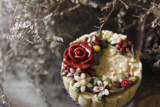 Bởi theo chị Ngọc: “Công đoạn sên nhân (sên nhân - xào nhân) mất rất nhiều thời gian. Vì sên nhân không đúng cách, chưa đủ đứng nhân thì bánh sẽ không vững. Sau đó phải tạo hoa bằng bột bánh, tôi phải chỉnh bằng tay và cả bằng khuôn rồi mới để lên bánh.”