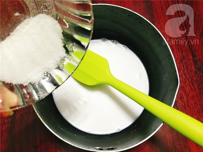 Bạn cho nước vào nồi bật bếp nấu lửa nhỏ cho sôi, trong khi đó bạn trộn chung đường và bột rau câu cho đều, khi nước sôi thì cho từ từ từng ít đường và bột rau câu vừa trộn sẵn vào, khuấy đều cho hỗn hợp đường tan hết và sôi trở lại, lúc này nước rau câu sẽ dần dần trong lại mới cho sữa tươi, nước cốt dừa vào khuấy đều là tắt bếp.