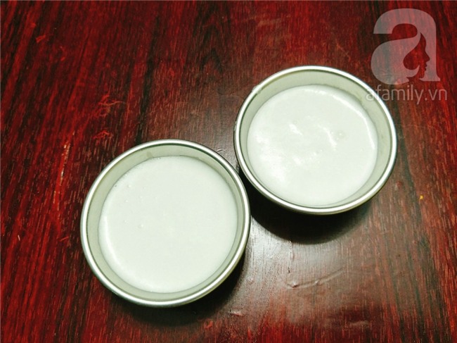 Để cho phần rau câu vừa nấu nguội bớt sau đó bạn rót vào các khuôn tròn, nhỏ hơn khuôn Trung thu, khi thạch đã nguội thì đem cất ngăn mát tủ lạnh khoảng 1 tiếng, như vậy bạn đã hoàn thành xong phần nhân sữa dừa.