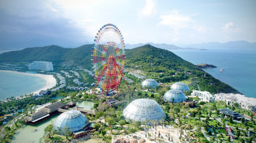 Toàn cảnh khu vui chơi Vinpearl Land nhìn từ trên cao với quy mô 70ha gồm hơn 90 hạng mục vui chơi giải trí đặc sắc