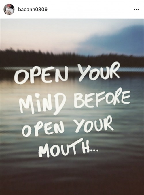 tiếng Anh: "Open your mind before your mouth" (tạm dịch: "Hãy suy nghĩ