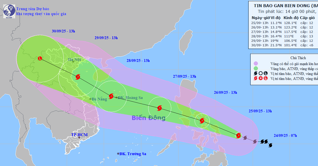 Theo Trung tâm Dự báo khí tượng thuỷ văn quốc gia, lúc 9h ngày 26/9, vị trí tâm bão Bualoi trên khu vực miền Trung Philippines, cường độ cấp 11, giật cấp 14.