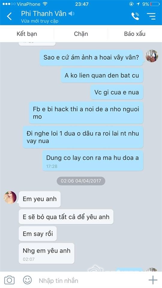 Vì bị tố 'bám váy' vợ cũ, Bảo Duy đã tiết lộ tin nhắn của Phi Thanh Vân gửi cho anh. Trong tin nhắn, Phi Thanh Vân cầu xin Bảo Duy quay lại với cô.