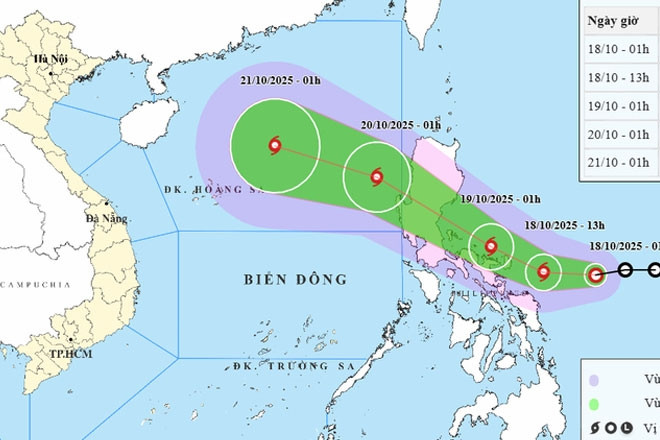 Theo Trung tâm Dự báo khí tượng thủy văn quốc gia, đến 7h sáng nay (19/10), vị trí tâm bão ở vào khoảng 14,1 độ Vĩ Bắc; 121,5 độ Kinh Đông, trên khu vực phía Đông miền Trung Philippines.