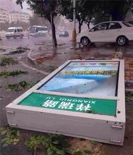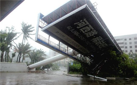 Những biển quảng cáo lớn đổ vì bão. Ảnh: hinews.cn.