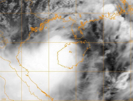 mây vệ tinh chụp lúc tâm bão vừa quét qua đảo Hải Nam (Trung Quốc).