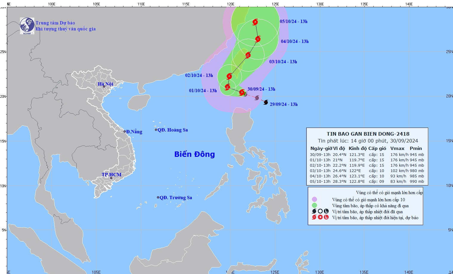 Theo Trung tâm dự báo khí tượng thủy văn quốc gia, hồi 13h ngày 30/9, vị trí tâm bão Krathon ở vào khoảng 20,4 độ Vĩ Bắc; 121,3 độ Kinh Đông, trên vùng biển phía Bắc đảo Lu-giông (Philippines).