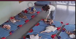 Cũng trong clip này, ngoài con của anh T, còn 2 trẻ khác cũng bị bảo mẫu đánh đập ngay trong giờ ngủ trưa.