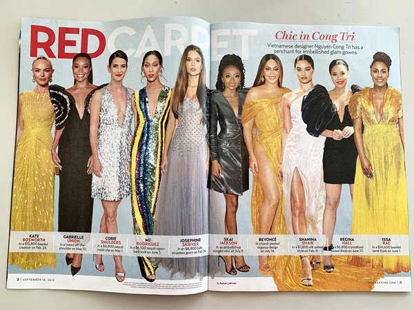 USMagazine cũng đăng tải bài tổng hợp các thiết kế runway Thu Đông 2019 của Công Trí được nghệ sĩ quốc tế lựa chọn. Tác giả của bài báo đã ưu ái gọi Công Trí là “Nhà thiết kế mới gây nghiện trên Thảm Đỏ”.