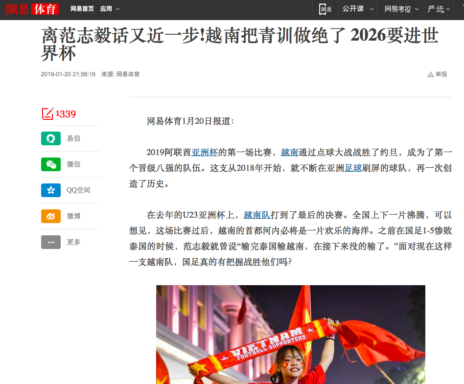 Trang QQ Sports khen ngợi sự nỗ lực của tuyển Việt Nam, nhận định rằng những người hùng này có thể đánh bại Nhật Bản ở Asian Cup 2019