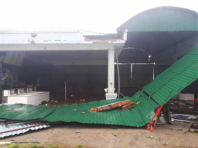 11h21', tại Hà Tĩnh, bão vừa cuốn phăng một ki ốt tại thị trấn Thiên Cầm. "Lâu lắm rồi mới thấy cơn bão mạnh như thế này" , đó là lời anh Tuấn, 45 năm sống ở mảnh đất Thiên Cầm này.