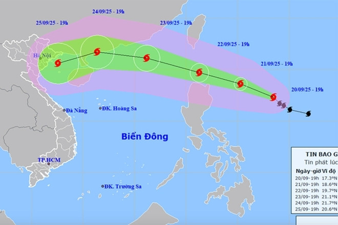 Theo Trung tâm Dự báo khí tượng thủy văn quốc gia, đến 13h chiều nay (21/9), vị trí tâm bão Ragasa cách đảo Lu-Dông (Philippines) khoảng 430km về phía Đông. Sức gió mạnh nhất vùng gần tâm bão mạnh cấp 14-15 (150-183km/giờ), giật trên cấp 17. Di chuyển theo hướng Tây Tây Bắc với tốc độ khoảng 15-20km/h.