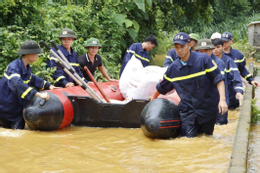 Lực lượng chức năng đã túc trực xuyên đêm, hỗ trợ người dân di dời tài sản, đảm bảo an toàn khu dân cư.