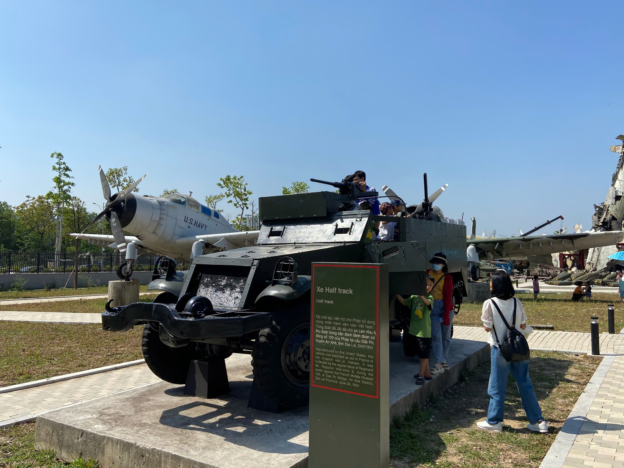 Bước ra khỏi không gian trưng bày bên trong, khu vực trưng bày ngoài trời khiến du khách thực sự choáng ngợp. Tại đây, những “chiến binh thép” như máy bay, xe tăng và tàu chiến hệt như những người lính già đang thì thầm kể những câu chuyện hào hùng của lịch sử. Từng hiện vật, hình ảnh được trưng bày trong bảo tàng đều khắc ghi, khơi gợi những dấu ấn hào hùng của một thời quá khứ vàng son, đưa người xem quay về với những trang sử vẻ vang của đất nước.