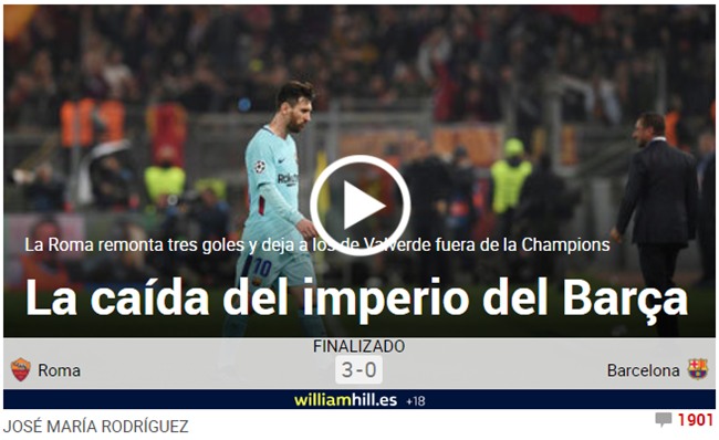 Tờ Mundo Deportivo cũng lên một loạt bài ca ngợi chiến thắng lịch sử của Roma sau 34 năm, đồng thời họ cũng ám chỉ nỗi thất vọng với đoàn quân của HLV Valverde.
