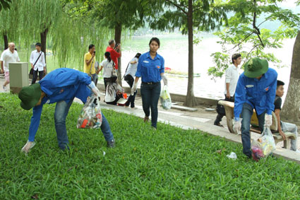 Hình ảnh những người nước ngoài cặm cụi nhặt quanh Hồ Gươm đã trở thành “bình thường” ở Hà Nội.