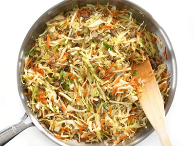 ![]() | ![]() Thêm bắp cải, cà rốt vào chảo thịt bò đảo cho bắp cải và cà rốt chín. |