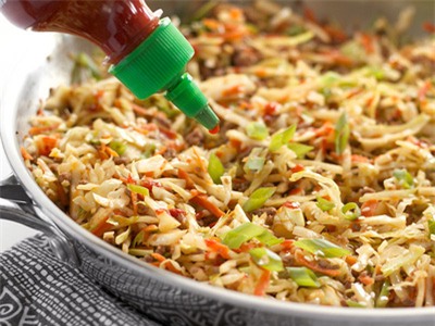 Phần nước sốt để xào: 30ml nước tương 15ml dầu mè 15ml tương ớt Một ít đường nâu Phần rau và thịt bò: ½ cây bắp cải xanh 2 củ cà rốt 3 cây hành lá 7ml dầu ăn 225g thịt bò băm 2 tép tỏi băm nhỏ 1 nhánh gừng băm nhỏ Một ít muối, hạt tiêu Phần trộn sau cùng: 1 thìa vừng rang 15ml tương ớt |