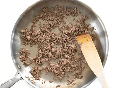 ![]() | ![]() Đun nóng chảo với lửa lớn, thêm 7ml dầu ăn vào tiếp đó cho thịt bò băm, tỏi băm, gừng băm và một chút muối, hạt tiêu đảo đều cho thịt bò tơi và chín tới. |