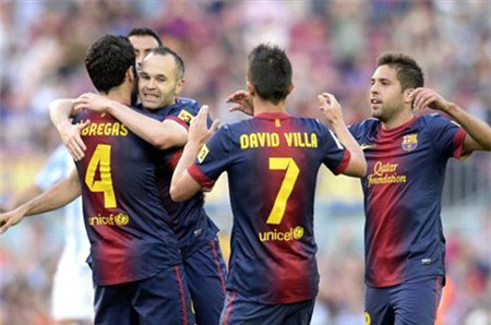 Trên sân nhà Nou Camp, thầy trò Tito Vilanova đã có trận khép lại mùa giải 2012/13 vô cùng hoàn hảo. Barca chơi tưng bừng và nhanh chóng trút mưa bàn thắng vào lưới đối thủ Malaga. Với chiến thắng này đội bóng chủ sân Nou Camp đã cân bằng kỷ lục vô địch với 100 điểm mà đại kình địch Real thiết lập ở mùa giải năm trước.