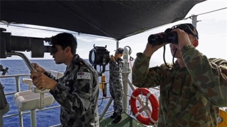 Quân nhân Australia trên tàu HMAS Perth tìm máy bay Malaysia trên Ấn Độ Dương hôm 10/4. Ảnh: Reuters |