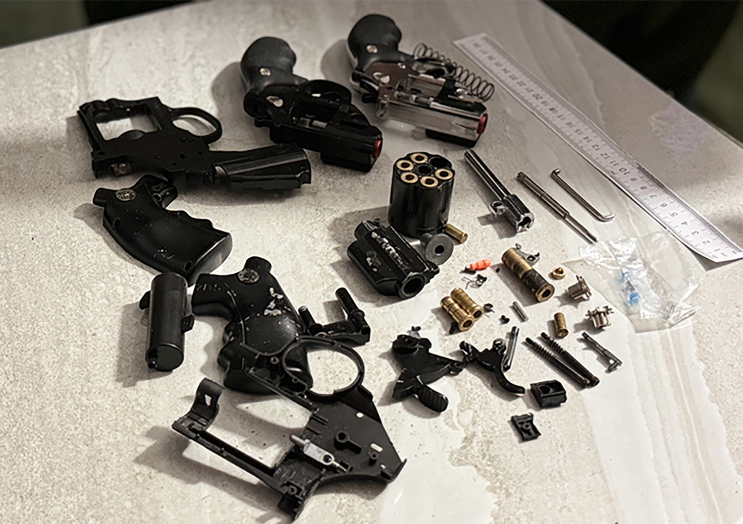 Lực lượng Công an khám xét chỗ ở của Sang thu giữ nhiều súng. Ảnh: Tiến Tầm