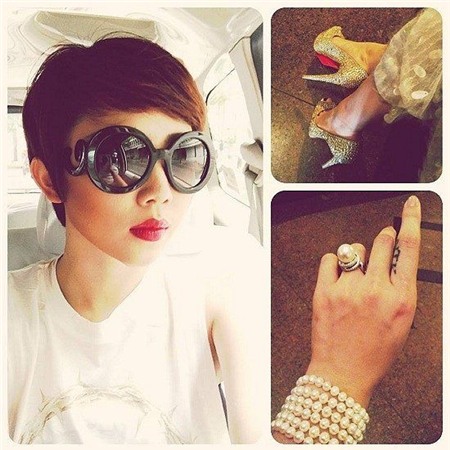 Các món phụ kiện mà Tóc Tiên lựa chọn cũng là niềm mơ ước của vô vàn tín đồ thời trang như kính embellished...