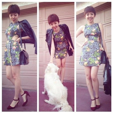 Hai mảnh của bộ đồ theo phong cách cổ điển được cô nàng ghép lại từ hai nhãn hiệu khác nhau và đều có điểm nhấn độc đáo cũng như tôn vóc dáng người mặc.