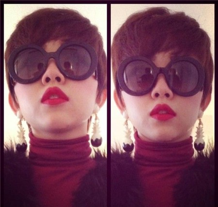 Màu son đỏ rất hợp với khuôn mặt và kiểu tóc mới của Tóc Tiên.