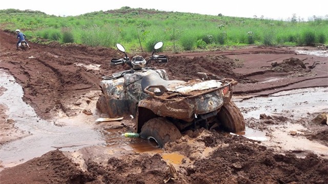 Theo ghi nhận của Zing.vn, thời điểm này thời tiết khu vực mưa nhiều, đường đi lại cực kỳ khó khăn. Khoảng cách từ trung tâm xã Đắk Ngo vào hiện trường hơn 20 km đường rừng. Lực lượng công an, bộ đội phải di chuyển bằng xe máy cày hoặc xe máy tự chế của người dân mới đi được.