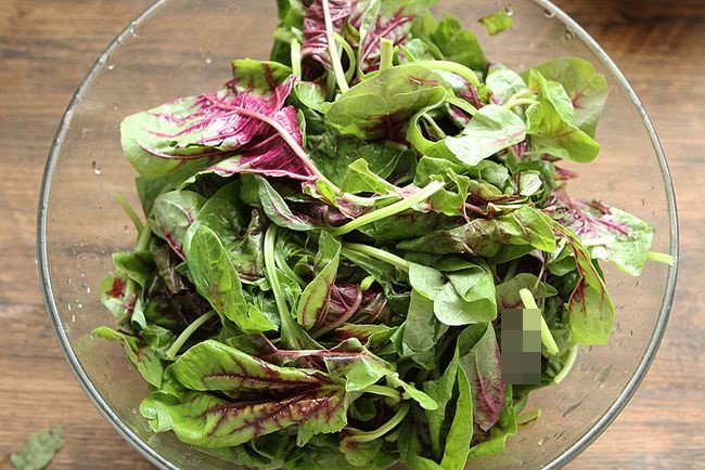3. Cho rau dền đã cắt vào bát lớn, đập thêm trứng vào, rồi thêm một ít bột ngũ vị hương và một lượng muối thích hợp.