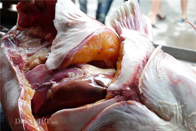 | Cá chiên, hay còn gọi là cá tiến vua với trọng lượng lên đến gần 30 kg, dài 1,2m đã được anh Lê Sỹ Long, chủ một cửa hàng ăn uống đưa từ Hòa Bình về Hà Nội. |