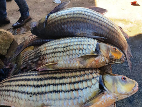 Ngay sau đó, người nhà ông Chiến tìm hiểu trên mạng thì mới biết là loại cá trê đuôi đỏ. Con cá mà ông Chiến bắt được cân nặng đến 15kg.