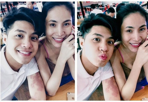 Ở một số ảnh trước đây, Noo Phước Thịnh cũng từng lộ vết bớt loang ở cánh tay trái.