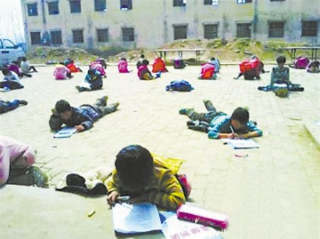 Theo China.org.cn, Wei Wei, một giáo viên tại trưởng tiểu học Chenxi (vùng nông thôn thuộc tỉnh An Huy, Trung Quốc), đăng hình ảnh các học sinh trong tư thế vừa nằm vừa làm bài kiểm tra, bất chấp trời nắng to.