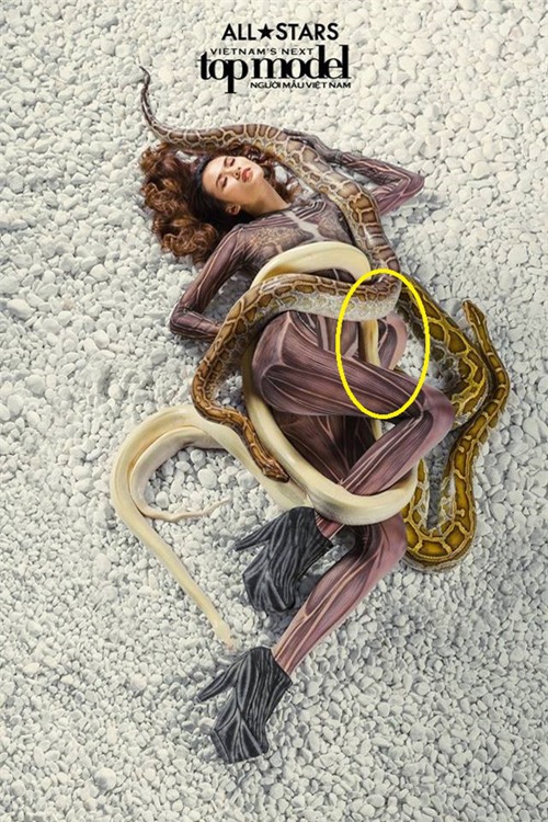 Mới đây, bộ ảnh chụp cùng trăn của dàn mẫu Next Top đã bị "bóc" vì có những phần photoshop bị lố và quá ẩu.