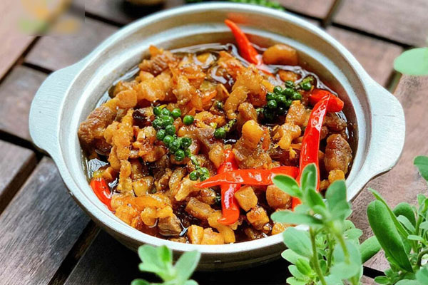 Da heo rửa sạch, luộc chín với muối.