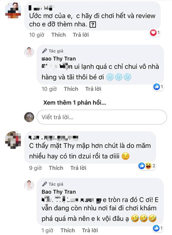 Bất ngờ dính tin đồn mang thai con đầu lòng, Bảo Thy nhanh chóng lên tiếng phủ nhận. Cô chia sẻ hiện tại còn phải đi khám phá nên chưa có dự định làm mẹ.